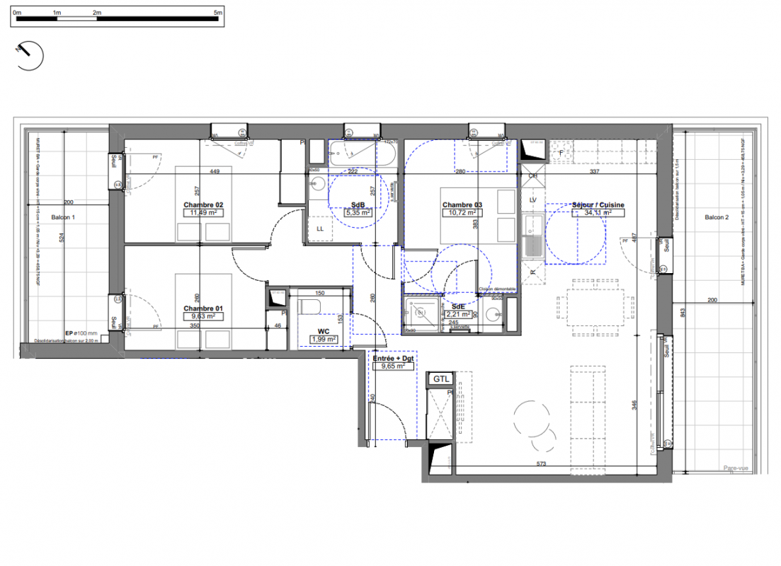 •Balcons pour tous les appartements