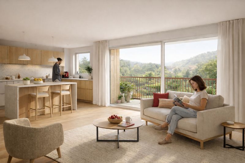 À proximité des commerces, des écoles, des plages et de la voie verte, chaque logement s'ouvre sur un balcon, une terrasse ou un jardin privatif. Certains appartements offrent des vues dégagées sur la montagne, dans un cadre naturel entre lac et reliefs.
