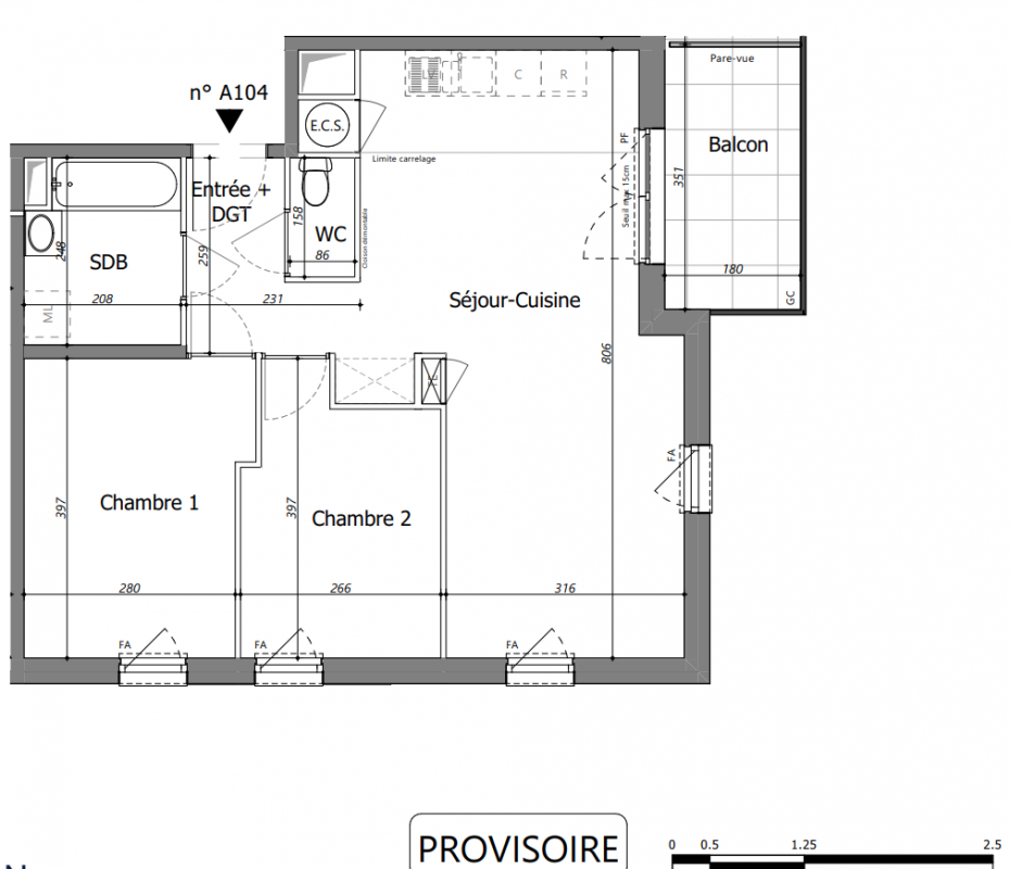 332 800€ Appt. T3 72.04m2 2ème