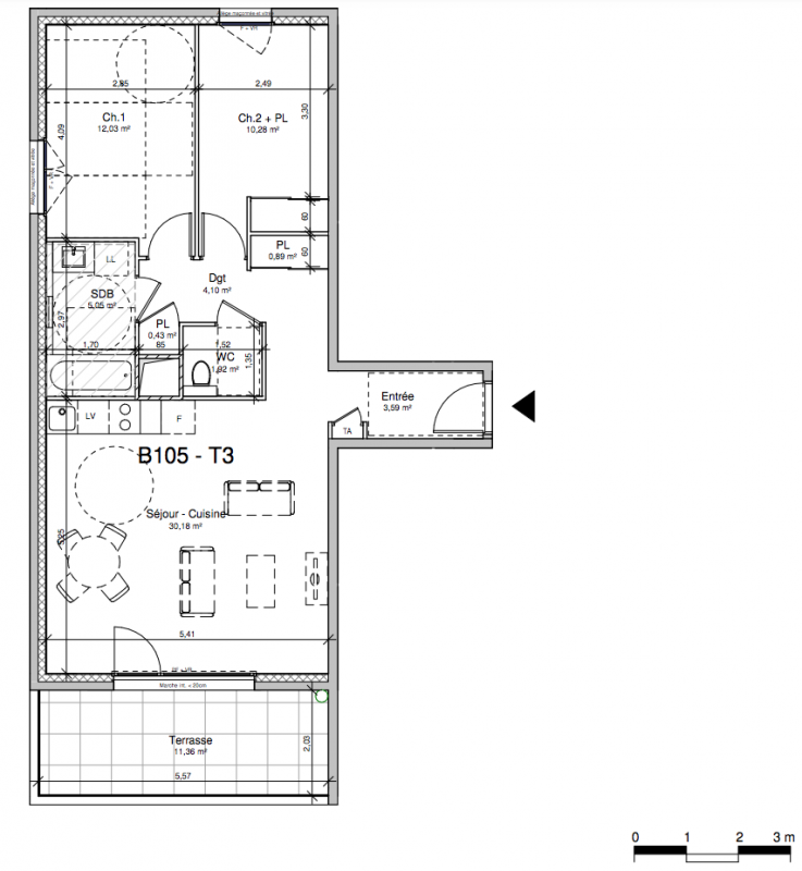 405 999€ Appt. T3 79.52m2 0-RDC