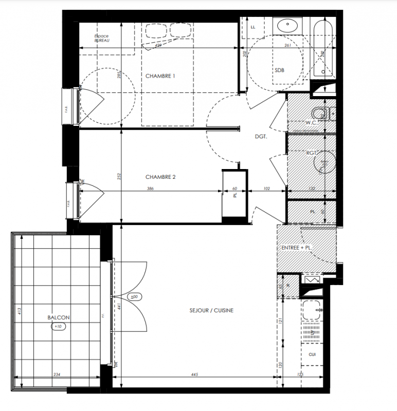 334 000€ Appt. T3 63.6m2 0-RDC