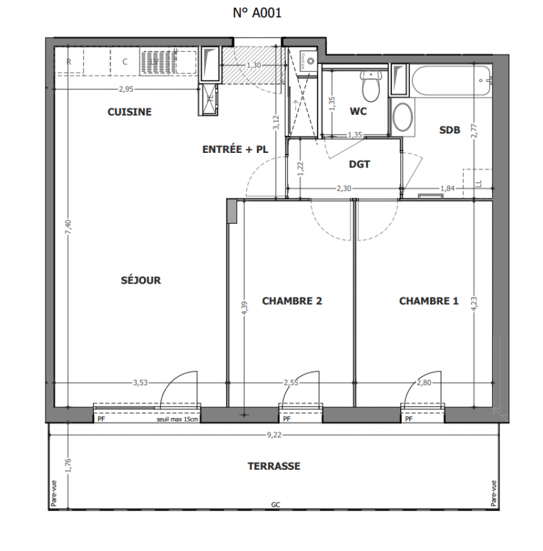 242 600€ Appt. T3 63.7m2 0-RDC