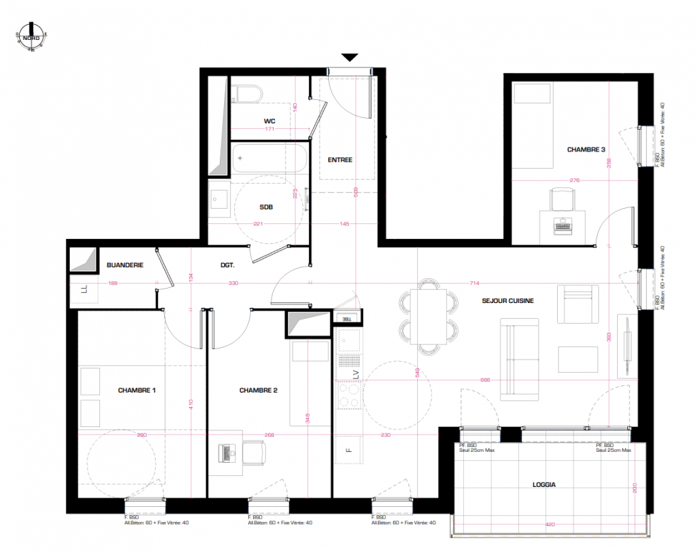 344 075€ Appt. T4 80m2 4ème