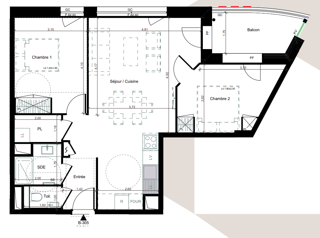 663 035€ Appt. T3 56.52m2 3ème