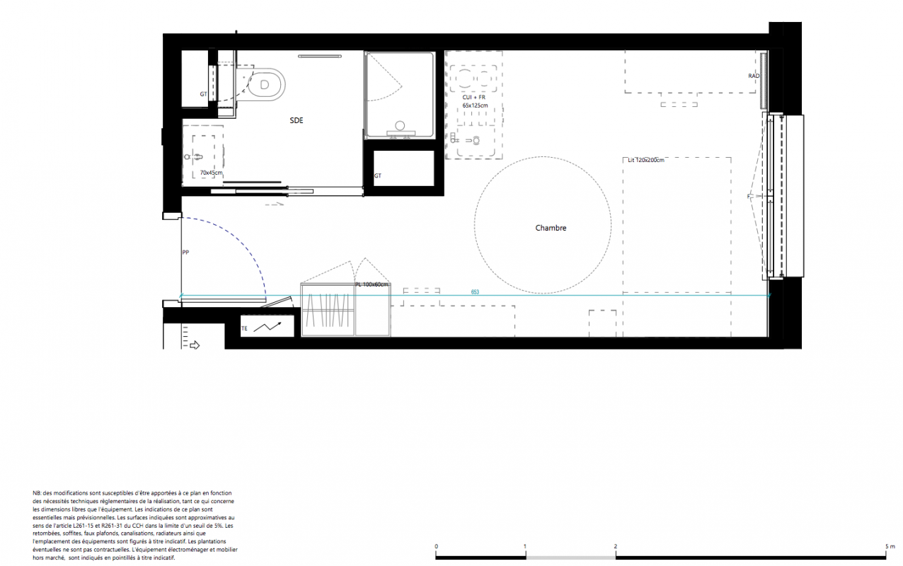 120 796€ Appt. Studio 22.47m2 3ème