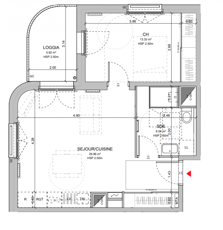 208 100€ Appt. T2 46.83m2 2ème