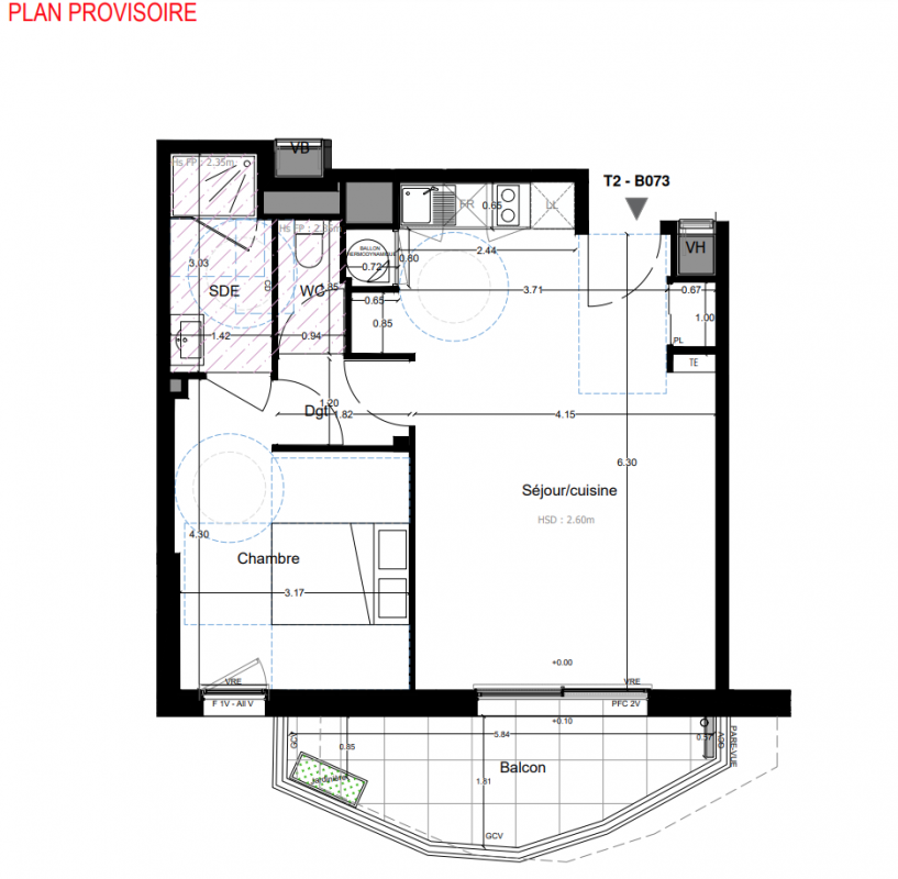 155 417€ Appt. T2 43.7m2 6ème