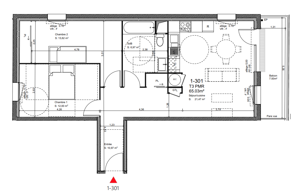 | Voir | Disponible | 169 800€ | 2103 | Appt. | T3 | 69.7m2 | 1er | Disponible | 169 800€ | Voir |