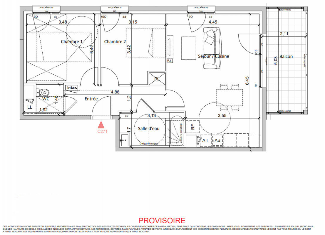 307 109€ Appt. T3 63.06m2 3ème