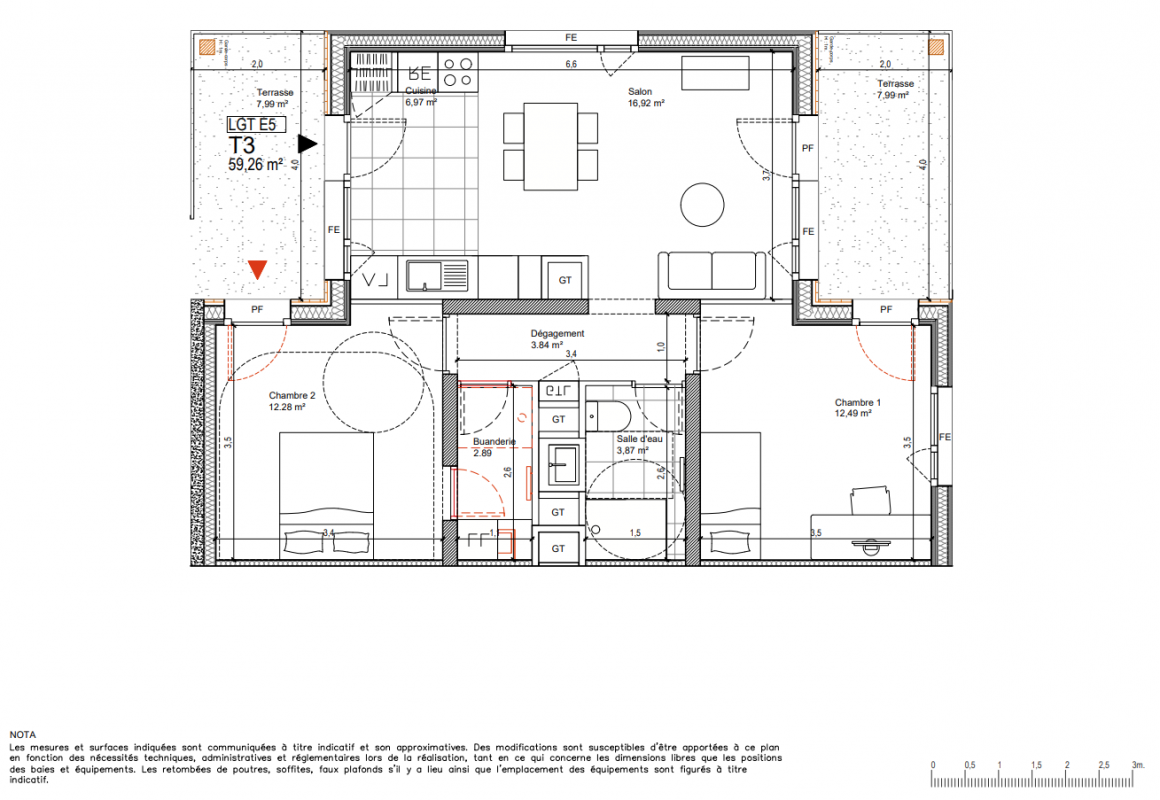 349 000€ Appt. T3 69.6m2