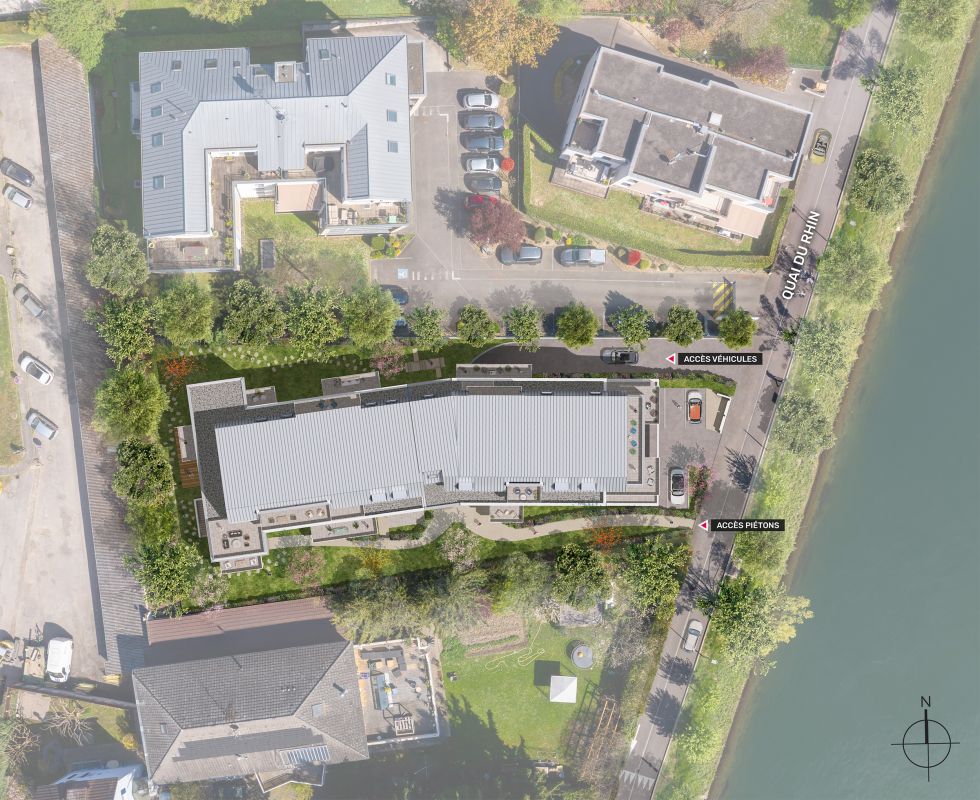 NOUVELLE RESIDENCE à HUNINGUE ! Soyez parmi les premiers à choisir votre appartement neuf du 2 au 4 pièces face au Rhin ! Découvrez vite notre nouvelle résidence haut de gamme dans un quartier prisé à Huningue ! Idéalement située au cœur de la région des Trois Frontières, entre la France, l'Allemagne et la Suisse, Huningue profite d’une localisation idéale, à proximité immédiate du centre-ville et de la mairie. Accessible à vélo, le cœur d’Huningue donne accès commerces et service de proximité : restaurants, boulangerie, pharmacie et banque postale. Pour élargir cette offre, un hypermarché se trouve à seulement 5 min* à vélo, rendant le quotidien encore plus pratique. Grâce à sa position stratégique, la ville offre un accès privilégié aux principaux bassins d’emploi local et internationaux. Par la route, les grands axes, tels que l’A35, assurent des déplacements rapides vers les principales agglomérations françaises et européennes. La gare de Saint-Louis, située à 12 min* à vélo, et l’aéroport de Bâle-Mulhouse-Fribourg, accessible en 9 min* en voiture, facilitent les trajets nationaux et internationaux. Par ailleurs, un réseau de transports en commun efficace, incluant un tramway avec une liaison directe vers l’Allemagne, assure une mobilité optimale pour les travailleurs transfrontaliers. Pour les déplacements doux, une piste cyclable permet de rejoindre le centre de Bâle en seulement 10min*.Située face au Rhin, dans uun quartier résidentiel prisé d’Huningue, notre nouvelle résidence propose des appartements haut de gamme du 2 au 4 pièces offrant des volumes généreux, des prestations soignées et des finitions élégantes. Chaque appartement bénéficie d’un espace extérieur privatif, offrant des vues dégagées et apaisantes sur le Rhin. Pensée pour harmoniser confort et nature, la résidence s’inscrit dans un environnement soigneusement végétalisé et accueille un jardin partagé. De plus, des équipements pratiques tels que des places de stationnement en sous-sol et un local à vélos viennent compléter les prestations de ce lieu de vie unique.Contactez-vite un de nos conseillers pour découvrir tous nos logements neufs et être parmi les premiers à choisir le logement de vos rêves ! Discover Our New High-End Residence in a Sought-After Neighborhood of Huningue !Ideally located at the heart of the Three Borders region, b...