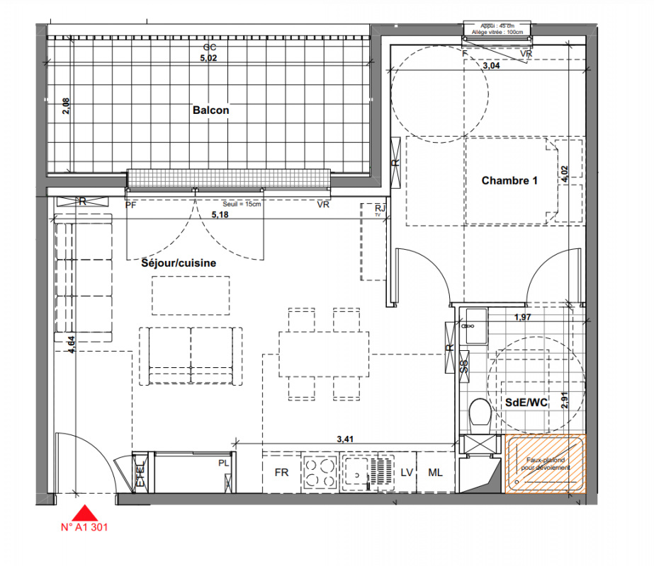 199 000€ Appt. T2 44.22m2 1er