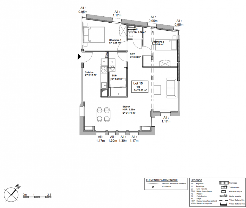 302 115€ Appt. T3 64.47m2 3ème