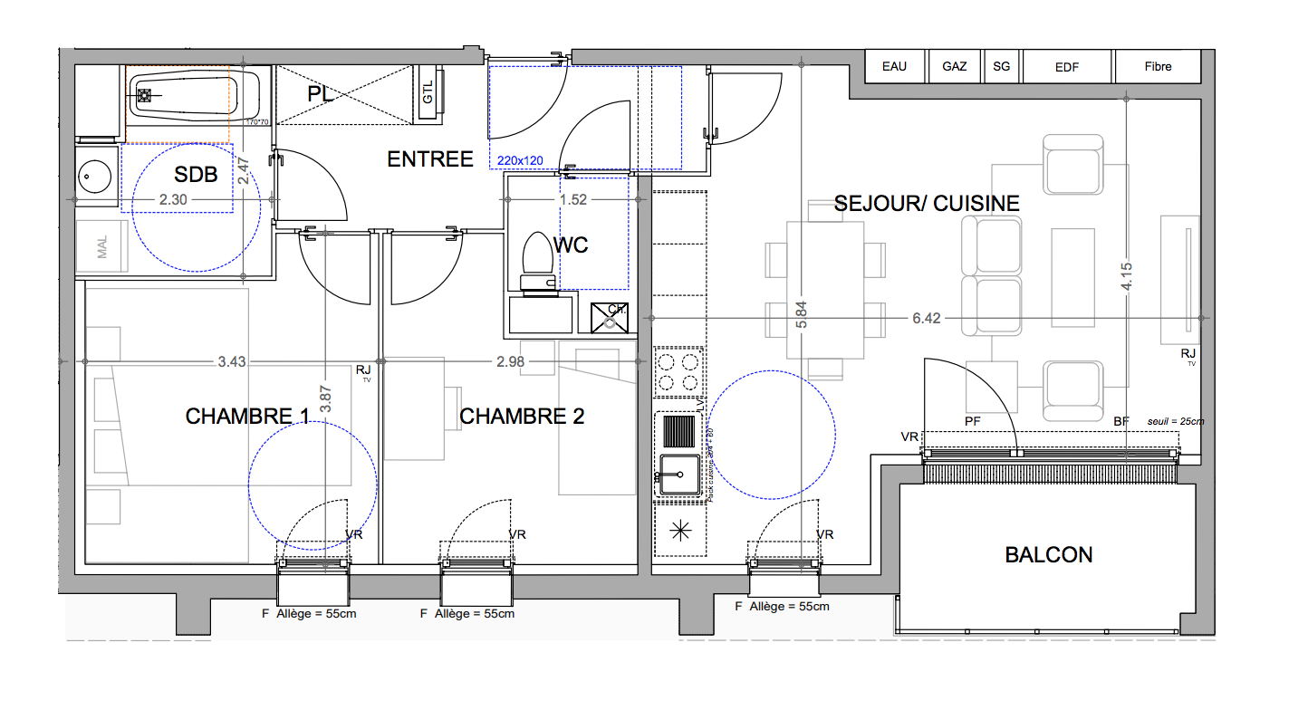 250 000€ Appt. T3 64.58m2 2ème