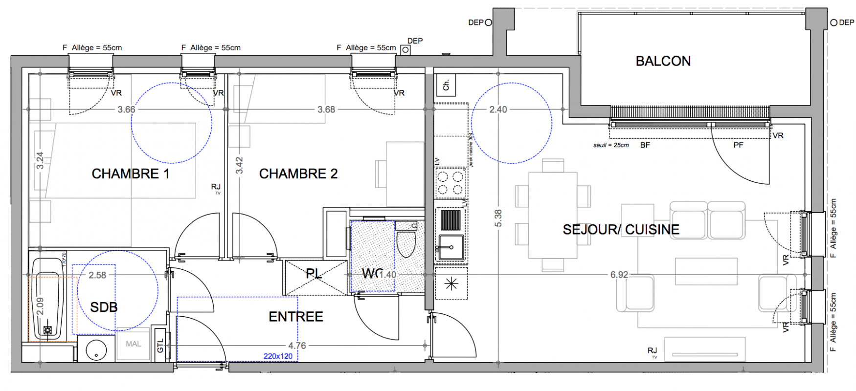 266 200€ Appt. T3 69.83m2 2ème