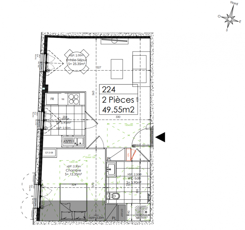245 000€ Appt. T2 49.55m2 0-RDC