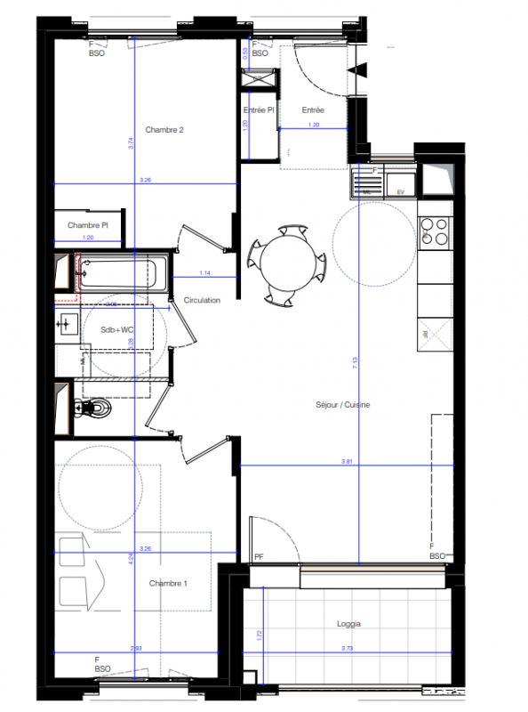 *Pour les logements du bâtiment T1 : brise-soleil à lames orientables.