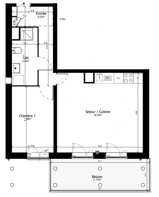 232 000€ Appt. T2 48m2 7ème