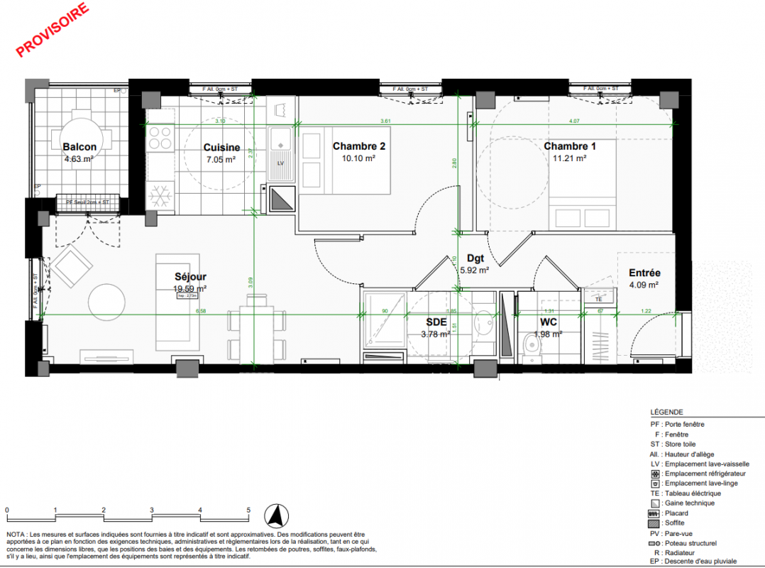 444 000€ Appt. T3 63.83m2 7ème