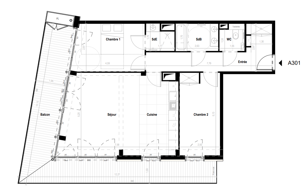 974 780€ Appt. T3 79.17m2 3ème