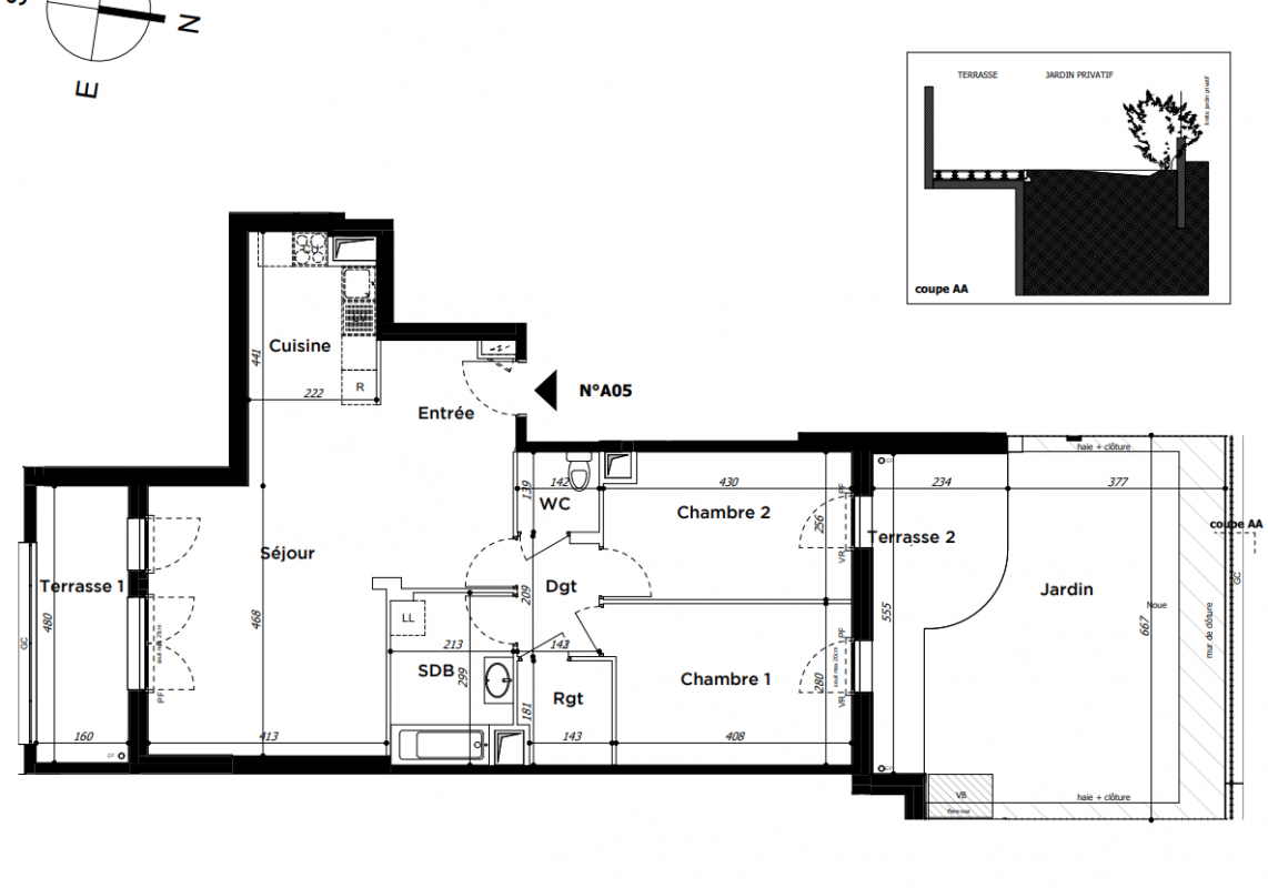 397 600€ Appt. T3 64.02m2 0-RDC