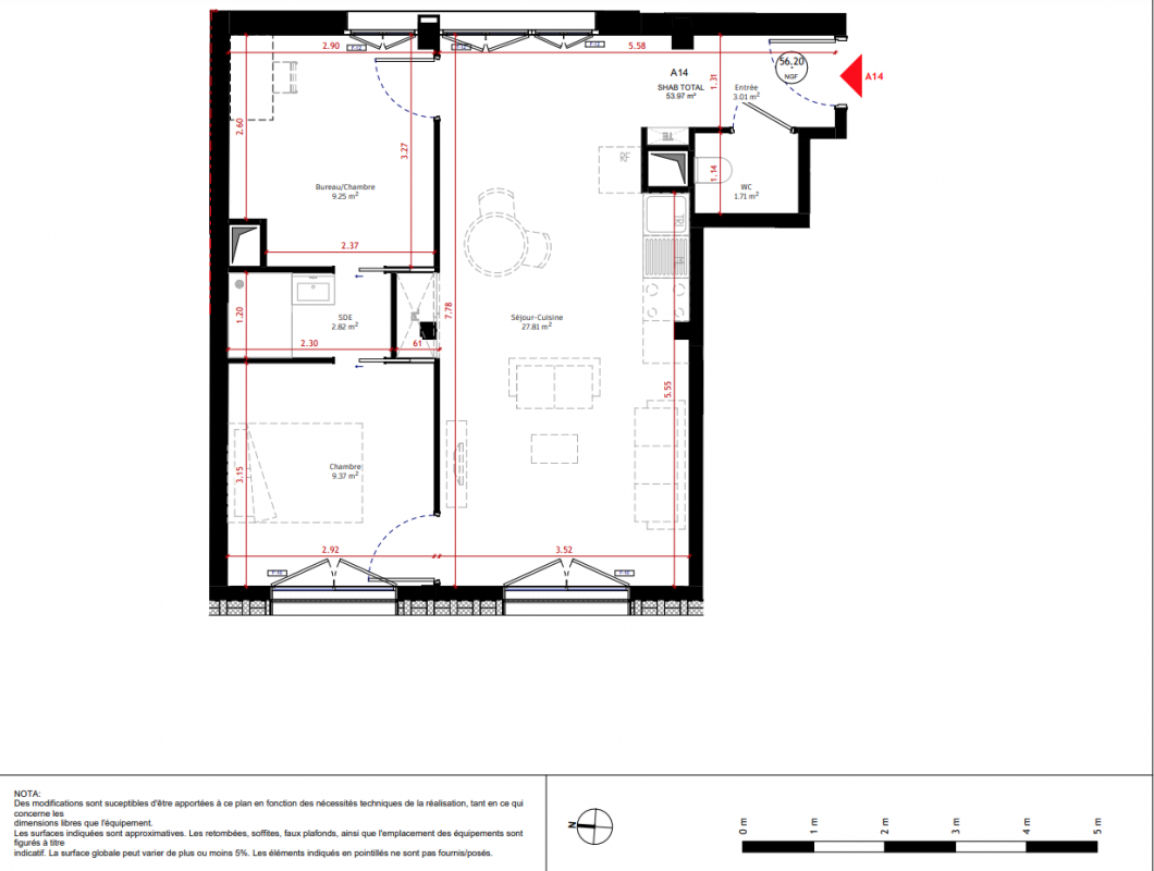 715 000€ Appt. T3 54.02m2 2ème
