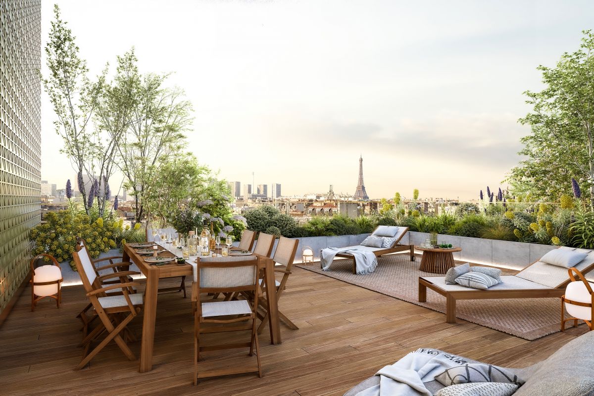 Des extérieurs spacieux avec, en étage, vues panoramiques sur Paris et la tour Eiffel