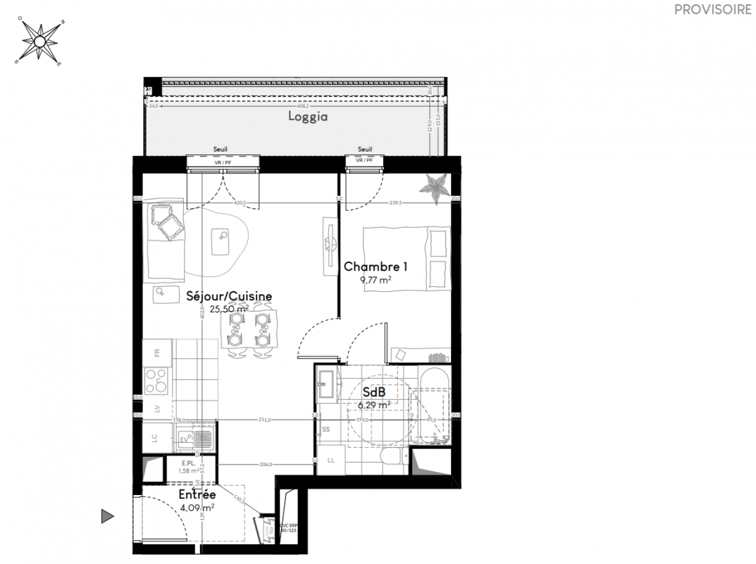 264 900€ Appt. T2 50.6m2 0-RDC
