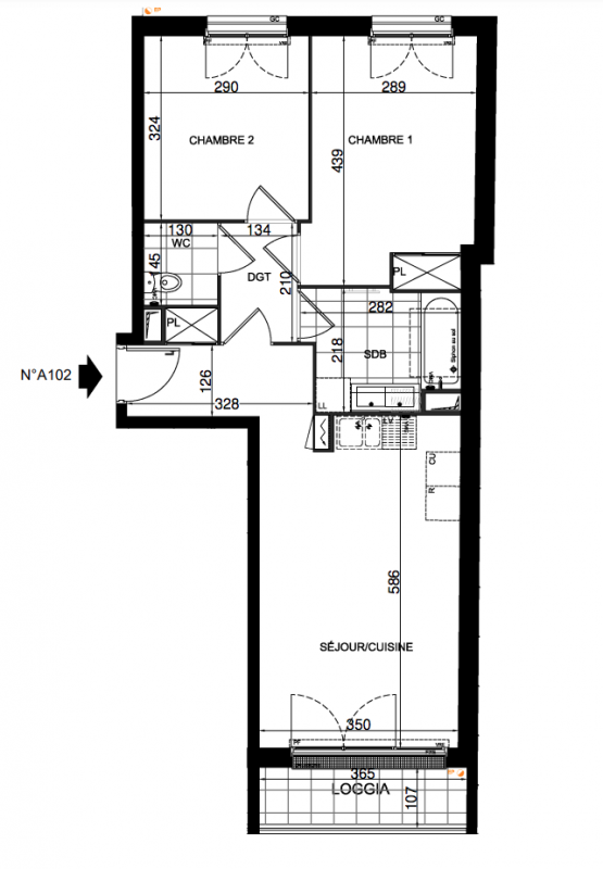376 999€ Appt. T3 59m2 2ème