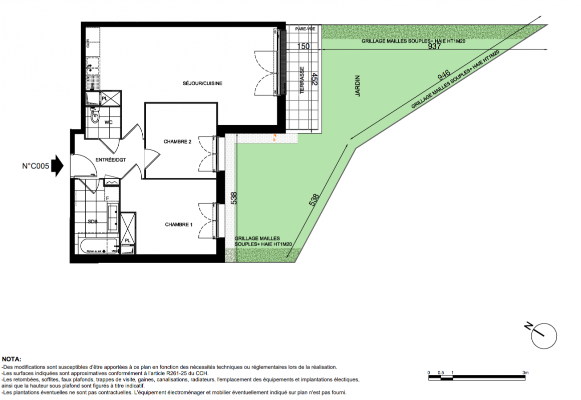 394 000€ Appt. T3 64m2 0-RDC