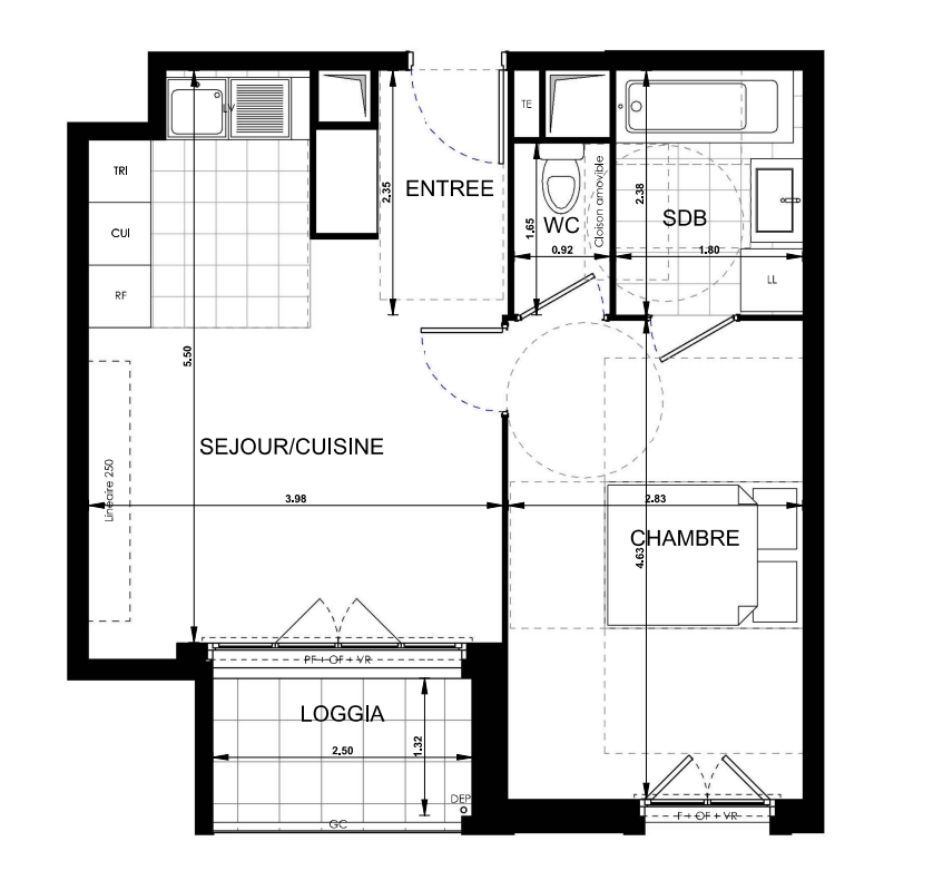 263 000€ Appt. T2 44.39m2 0-RDC