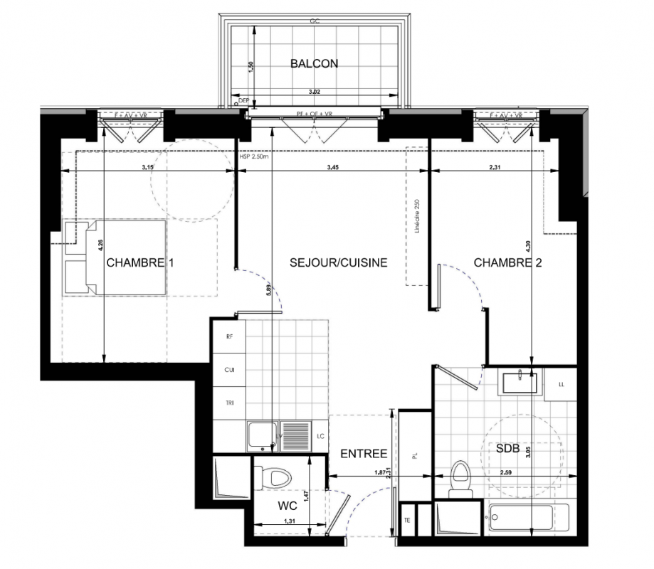 331 000€ Appt. T3 59.41m2 0-RDC