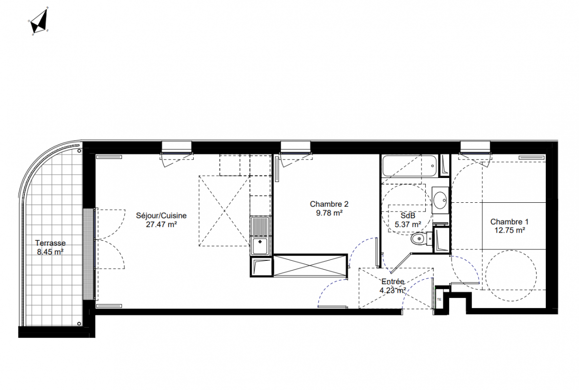 266 400€ Appt. T3 61.3m2 1er