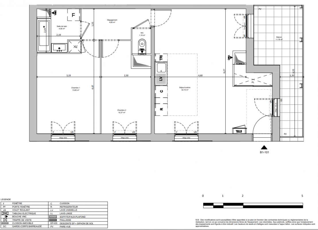 362 000€ Appt. T3 66.96m2 0-RDC