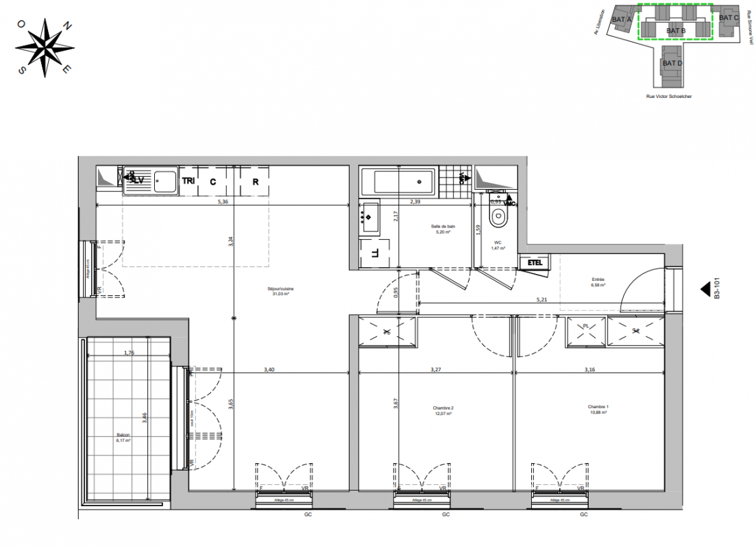 357 000€ Appt. T3 66.5m2