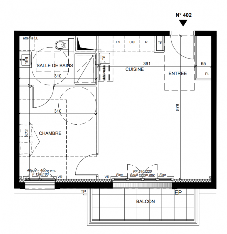 Meuble vasque avec miroir à partir du T3 (selon plan) et Wc suspendu