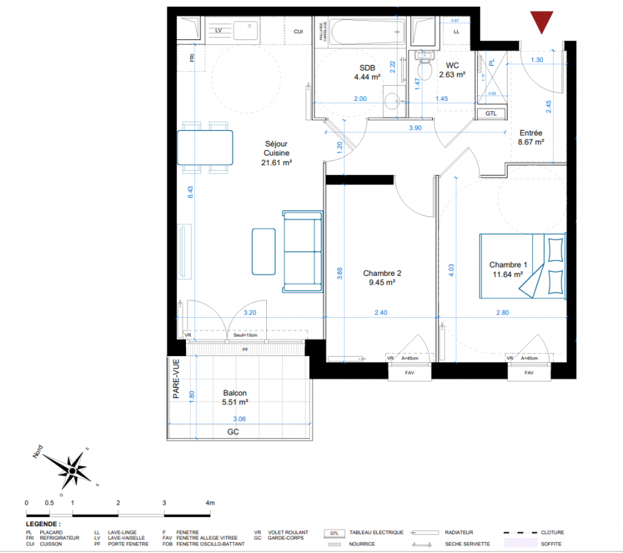 223 999€ Appt. T3 58m2 2ème