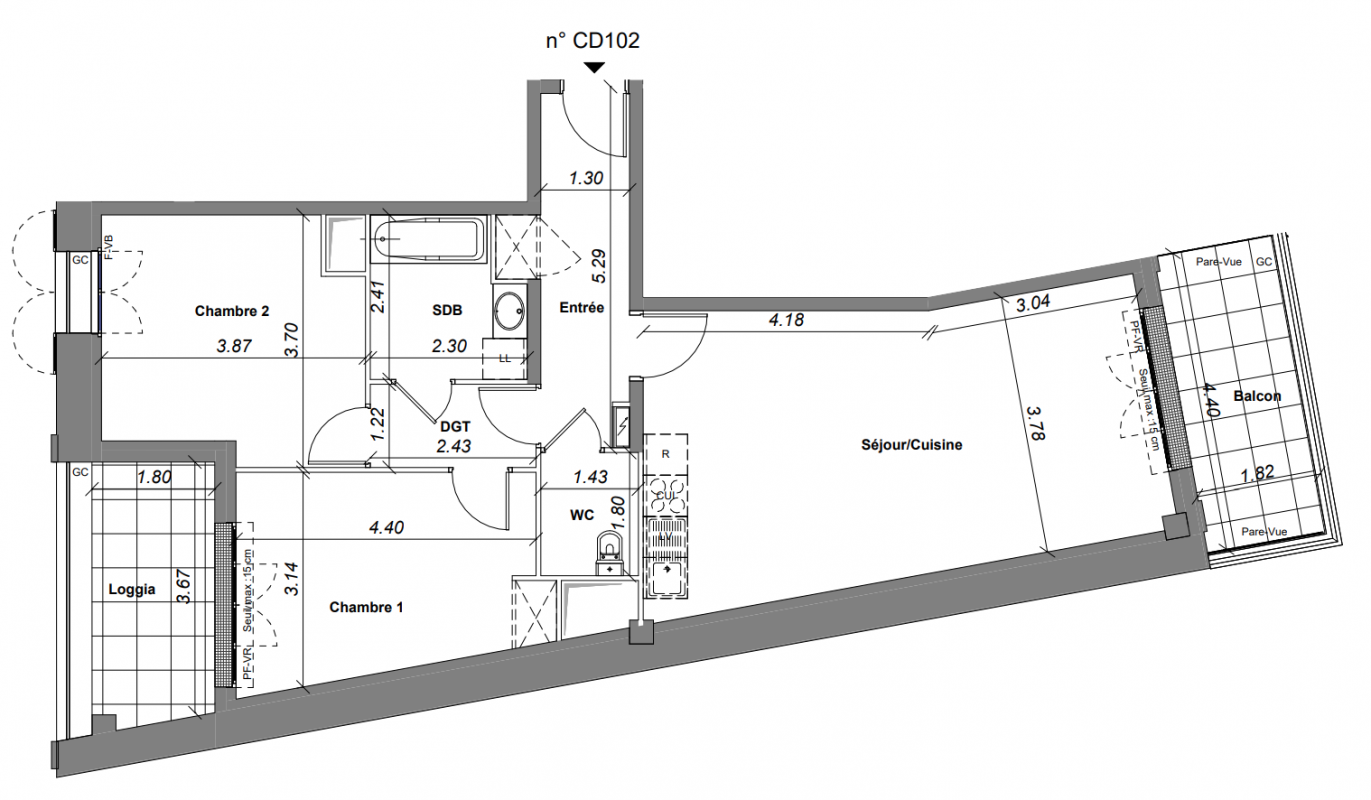 376 100€ Appt. T3 70.33m2 0-RDC