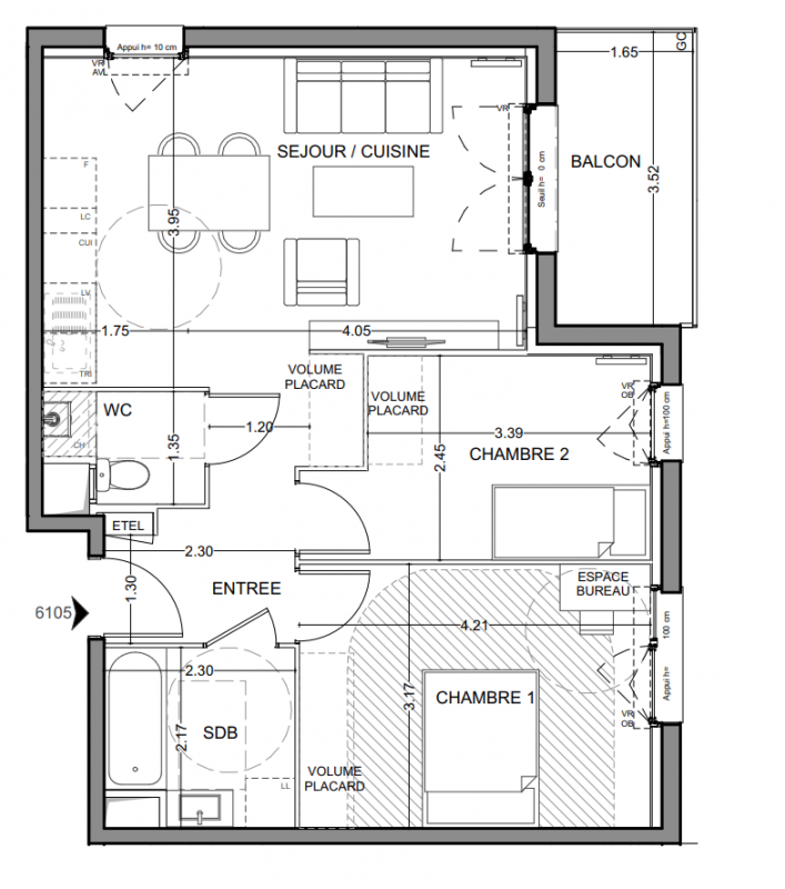 191 090€ Appt. T3 57.24m2 2ème