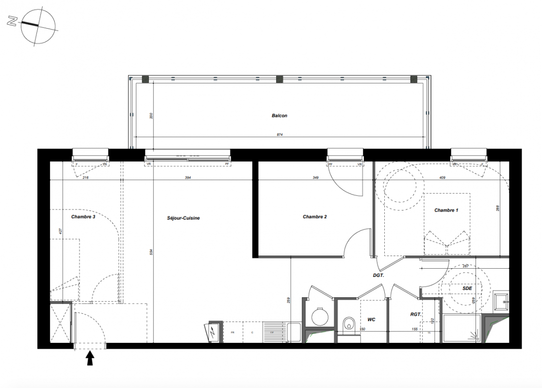 439 999€ Appt. T3 74m2 2ème
