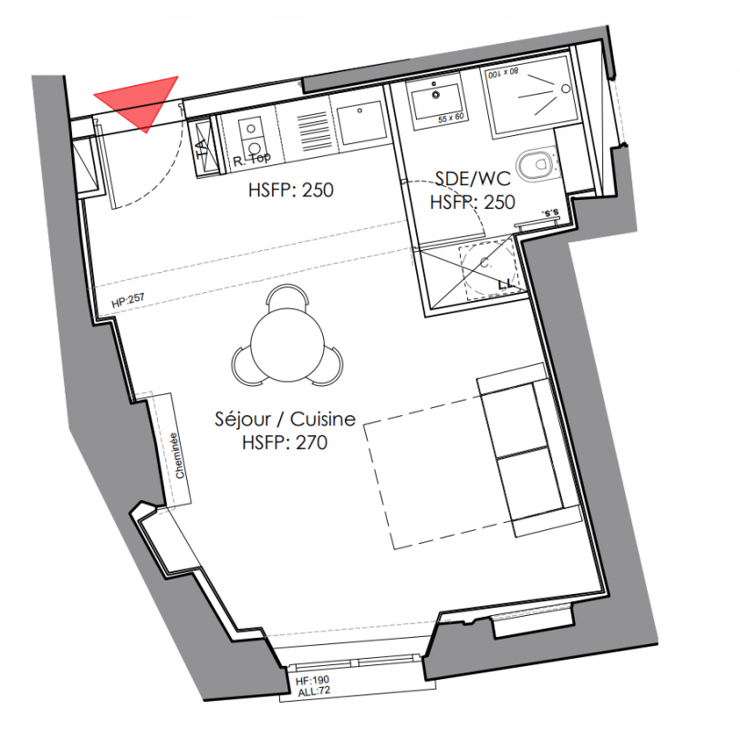 144 450€ Appt. Studio 23.3m2 3ème