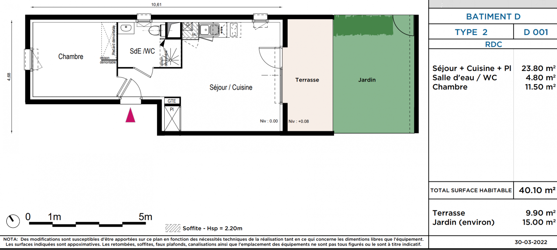 219 900€ Appt. T2 40.1m2 0-RDC