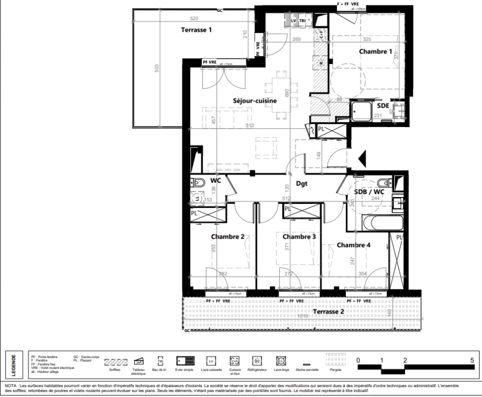 - T4 et T5 en attique avec grandes terrasses (jusqu'à 70 m²) : clientèle familiale urbaine et CSP+.