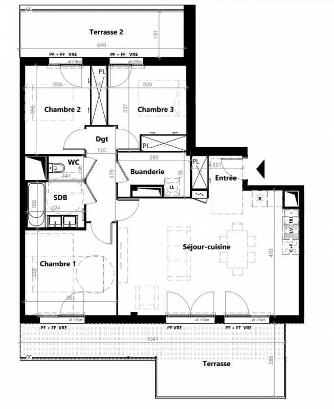 - T4 et T5 en attique avec grandes terrasses (jusqu'à 70 m²) : clientèle familiale urbaine et CSP+.