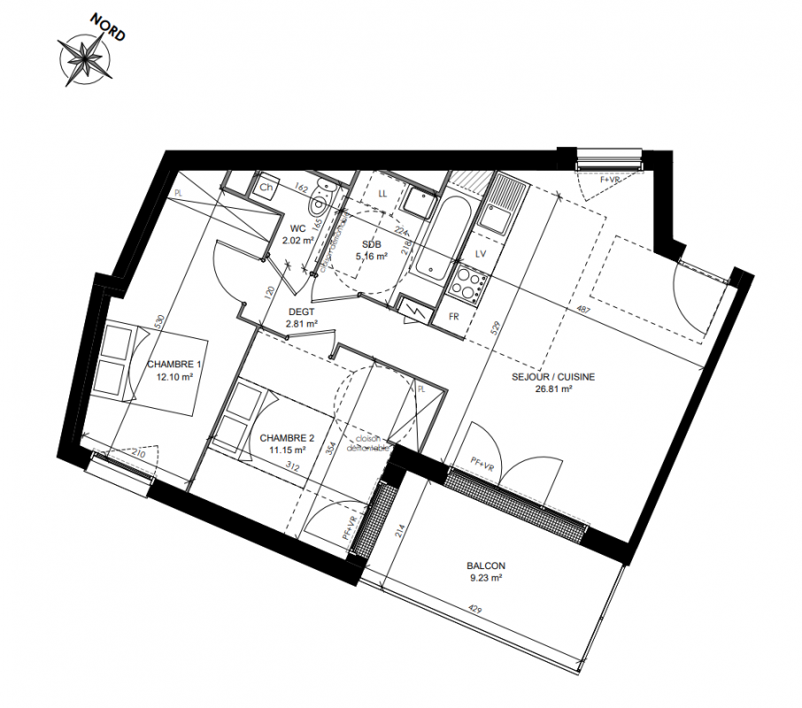 - Appartements 3 pièces : Des volumes de vie confortables allant de 59,50 m² à