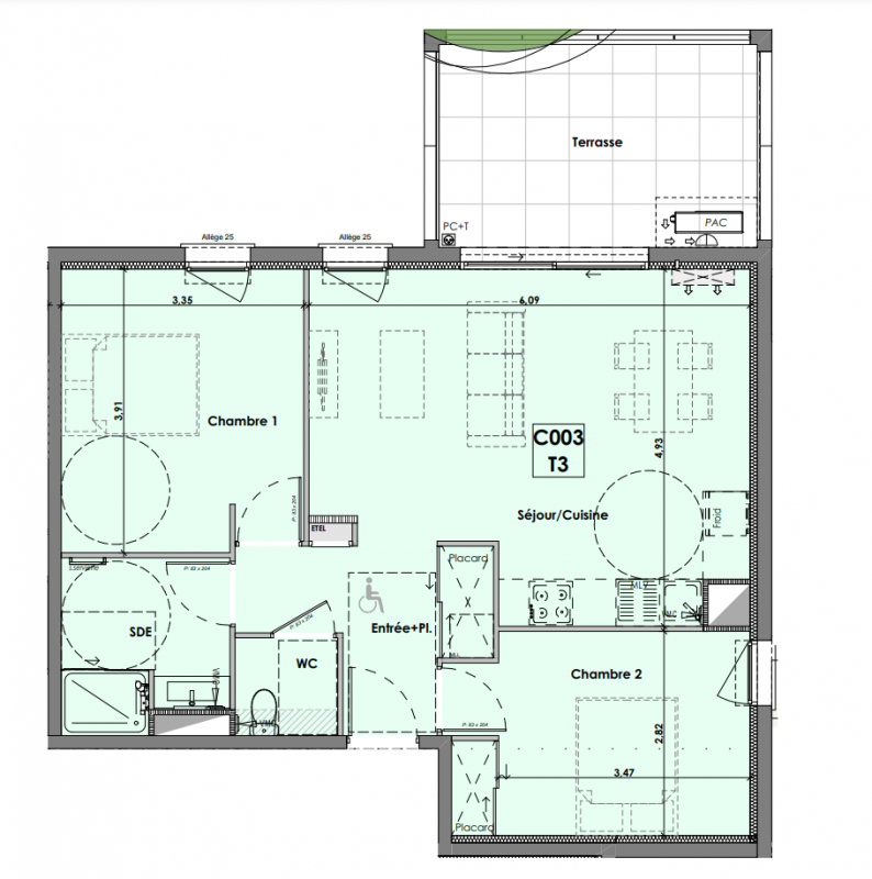 295 500€ Appt. T3 72.77m2 2ème