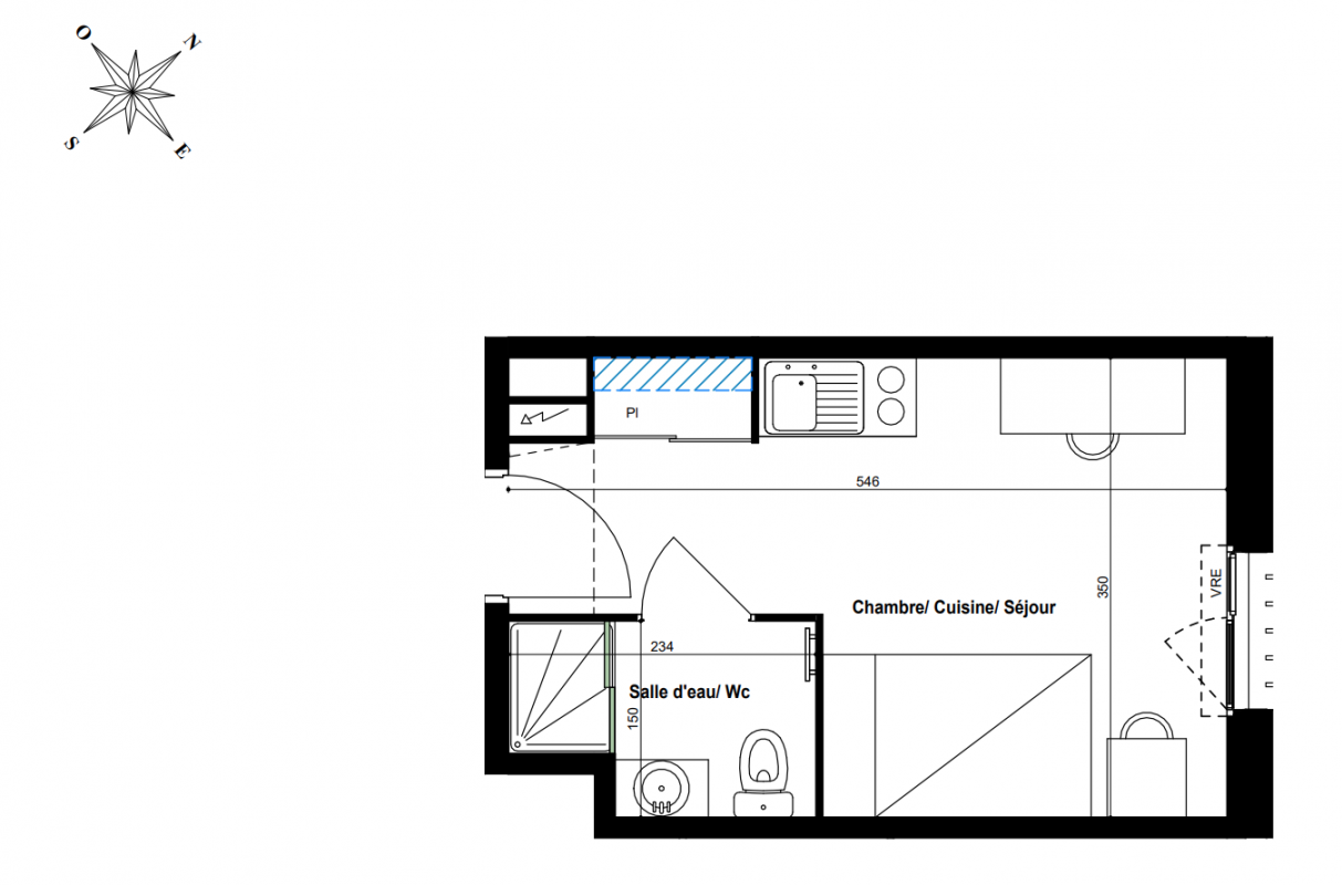 166 344€ Appt. Studio 23.4m2 2ème