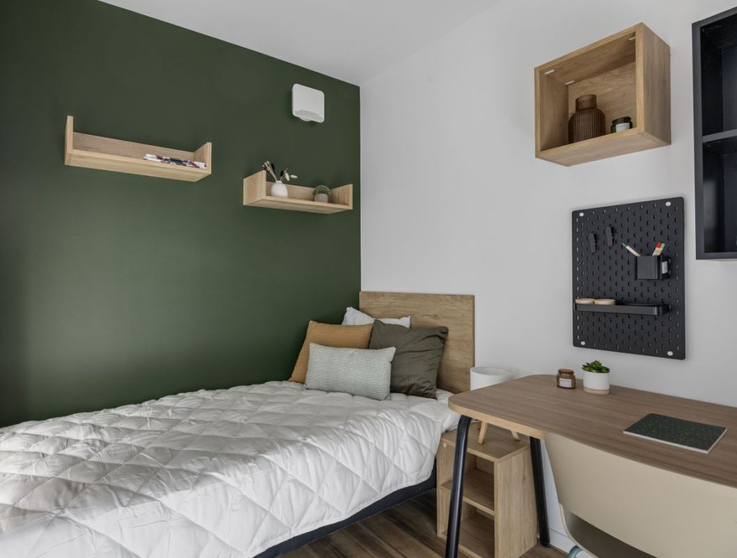 Les studios et T1 bis tous meublés et équipés et sont complétés par des espaces partagés : cuisine et salle commune, terrasse paysagée et laverie.