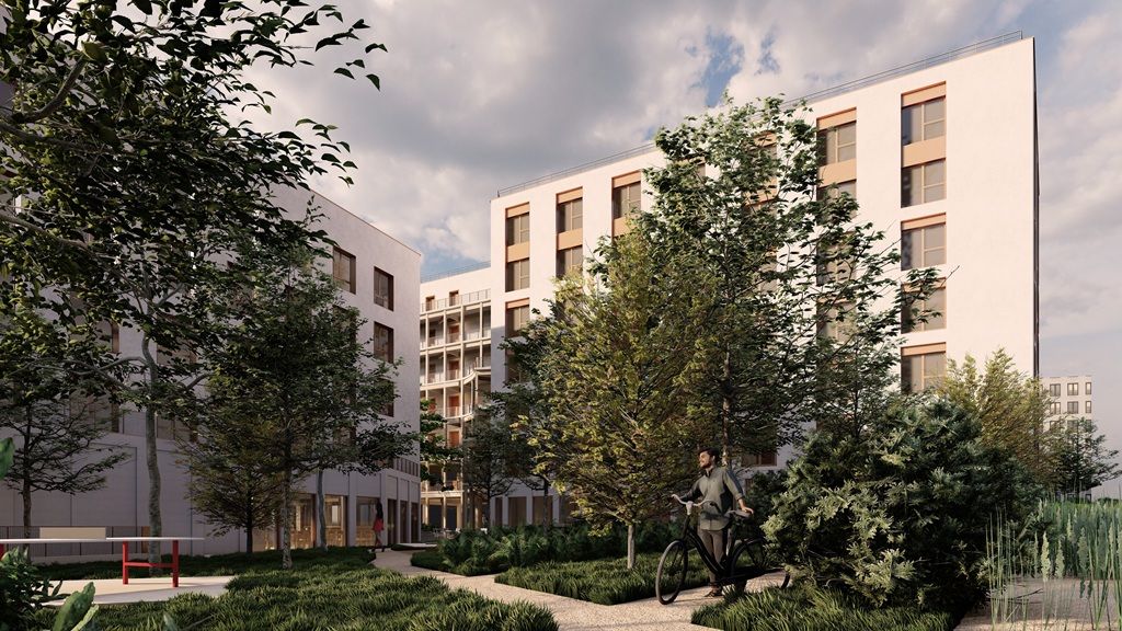 La résidence BO TERRA fait la part belle à la mixité des usages avec ses 2 îlots qui accueillent chacun 42 et 26 appartements du studio au 4 pièces, une crèche de 350m² et des locaux dédiés...