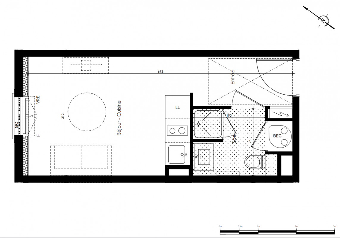 93 300€ Appt. Studio 15.88m2 0-RDC